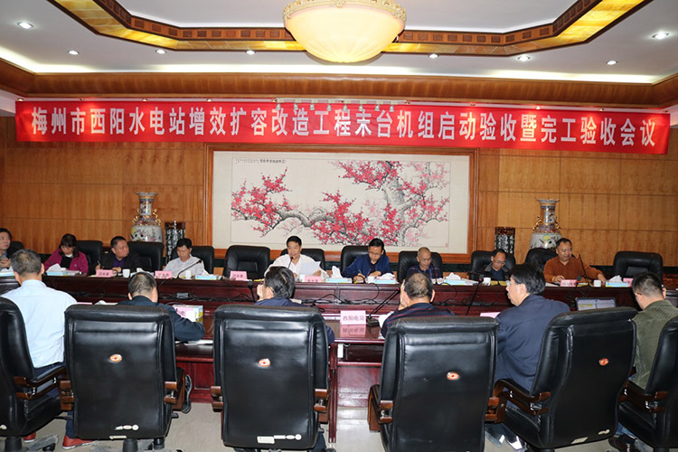 11月26日,市水務局主持召開“梅州市西陽水電站增效擴容改造工程末臺機組啟動驗收和完工驗收會議”。市水利水電質量安全技術中心、廣東電網梅州城區供電局、梅江區發改局、梅江區水務局、梅江區水利水電質量安全技術中心、市水利水電行業協會以及工程建設、工程監理、設計、施工單位和主要設備廠家等單位的代表參加會議。